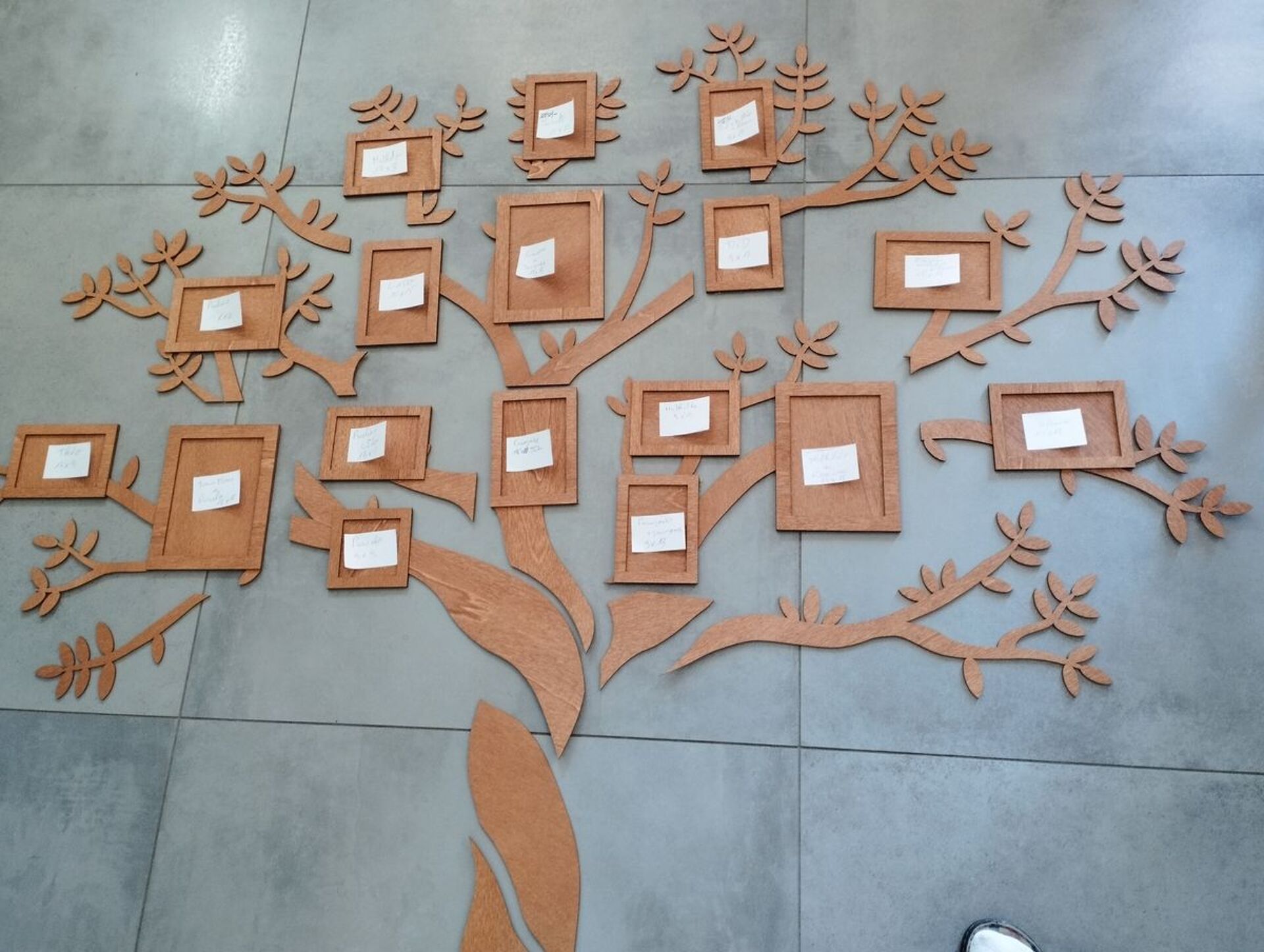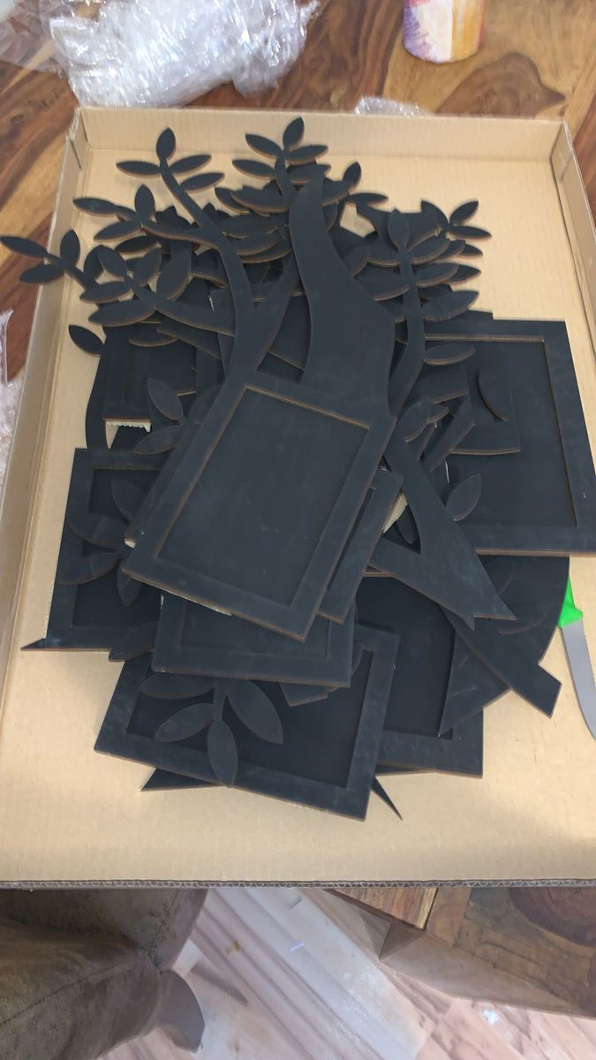 Die Bilderrahmen sind Teil des Designs. Der Baum lässt sich leicht an der Wand befestigen, da der Baumstamm und die Äste 3 mm dick sind.